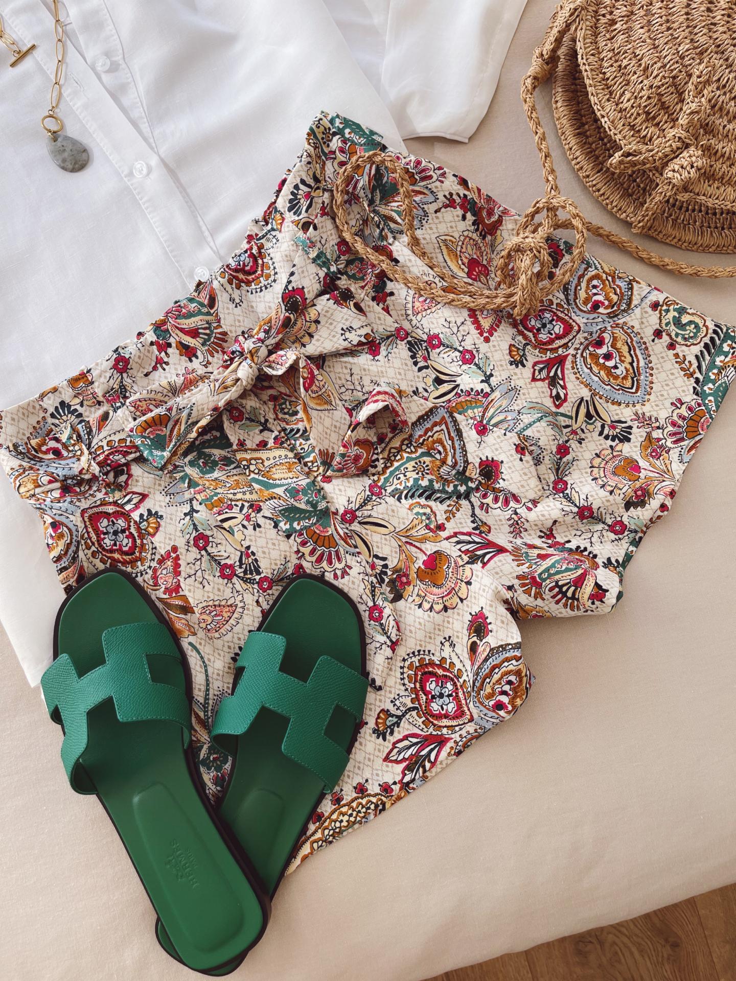 Short Estampado con bolsillos laterales, doble pinza en delantero y lazada del mismo tejido y goma en la parte trasera .