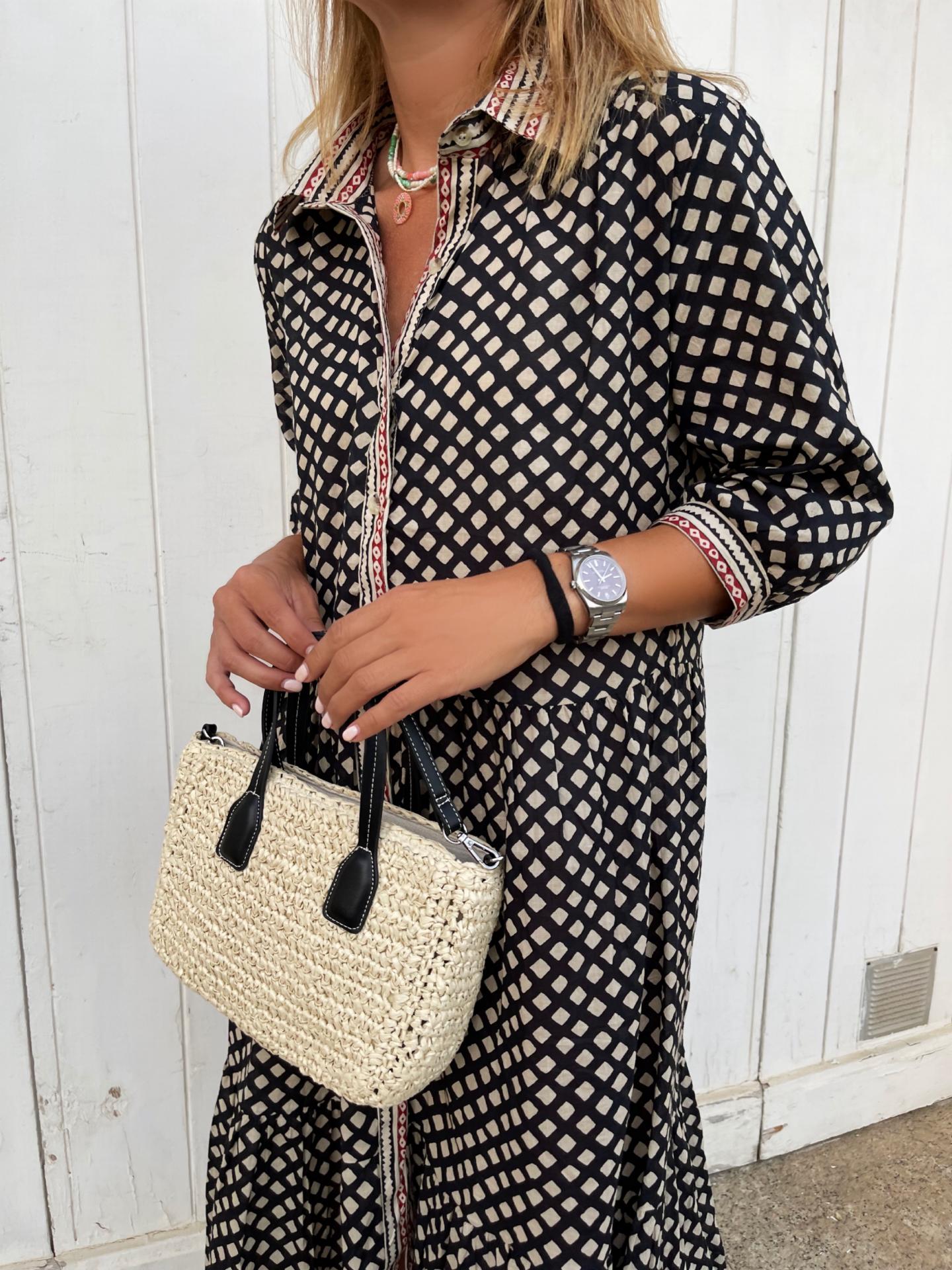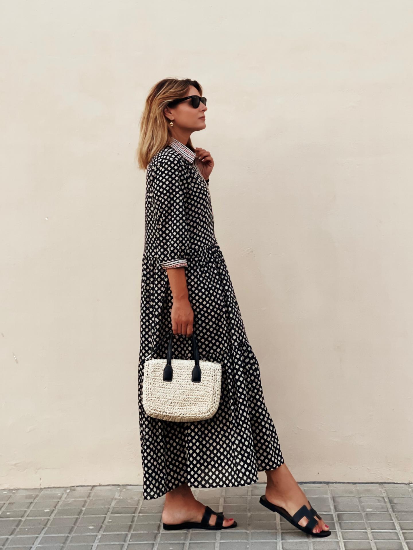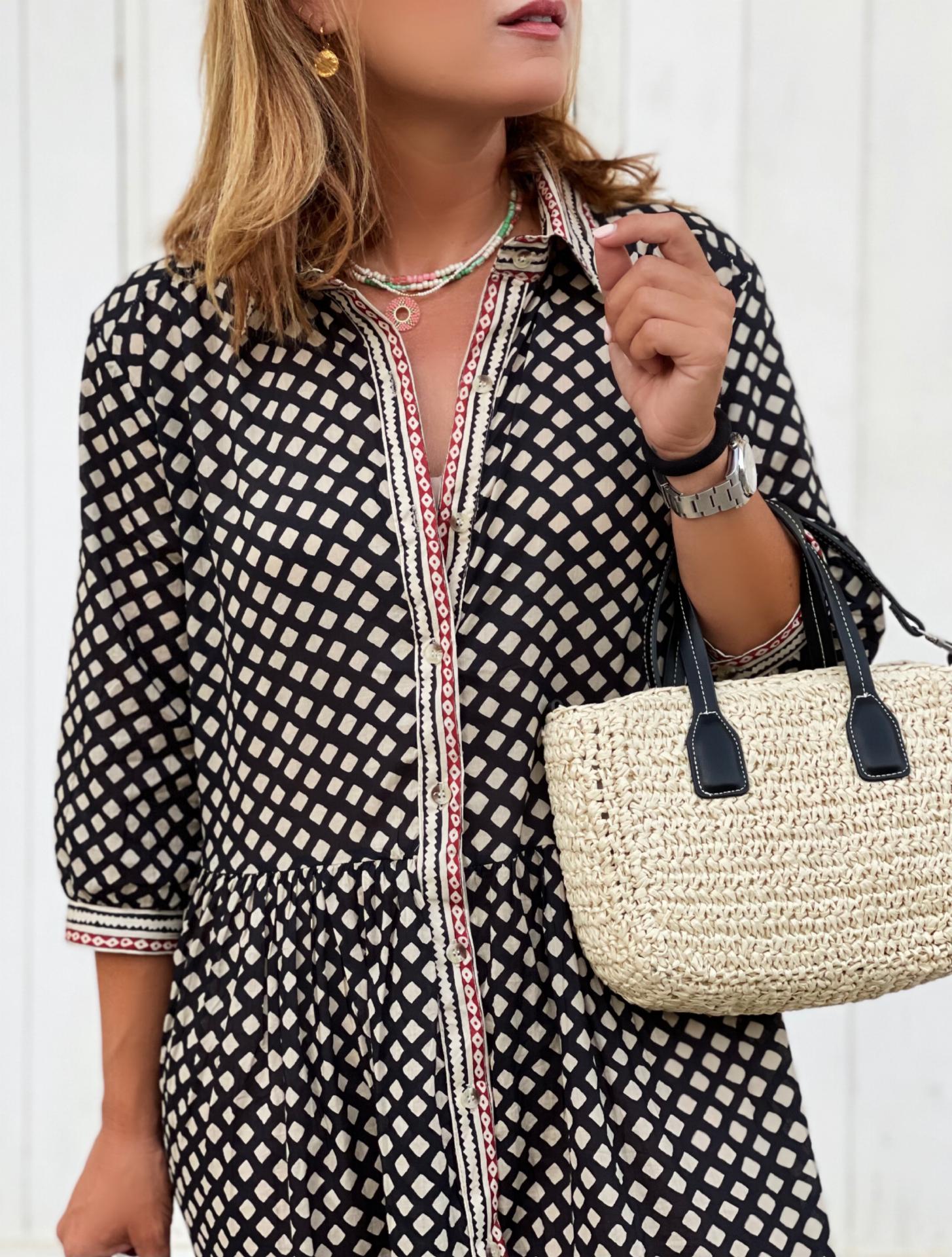 Vestido camisero con manga 3/4 cuartos con botón.