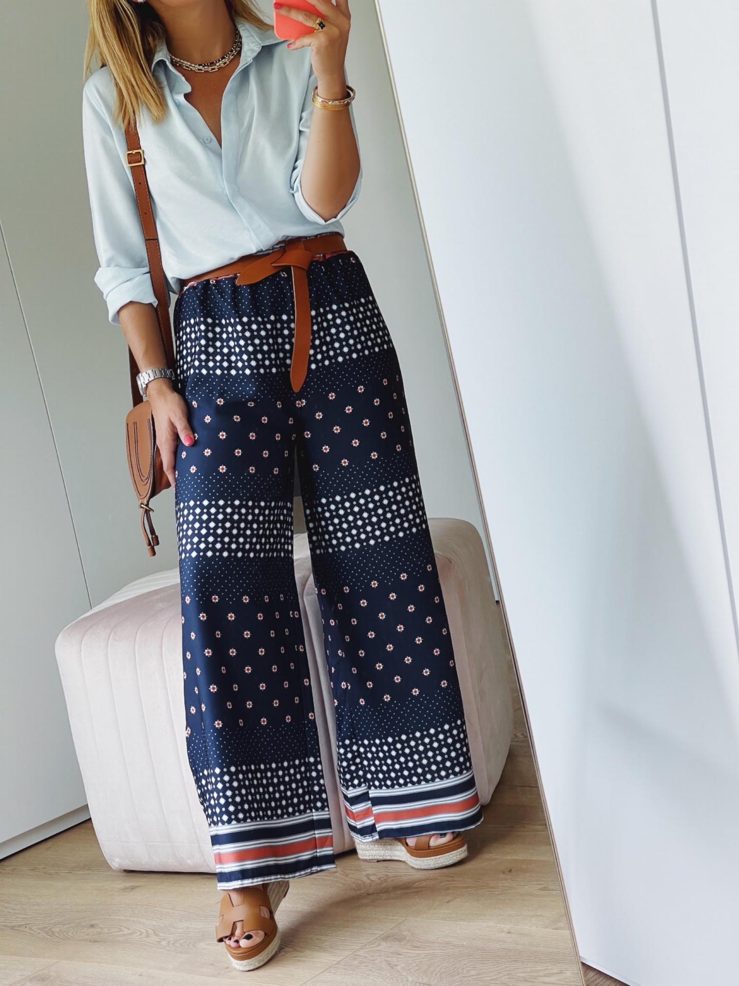 Pantalón estampado y goma en la cintura y de corte ancho. Es un pantalón ideal que podrás lucir con una camisa de manga larga como nuestra SABRINA , ideal para entretiempo !