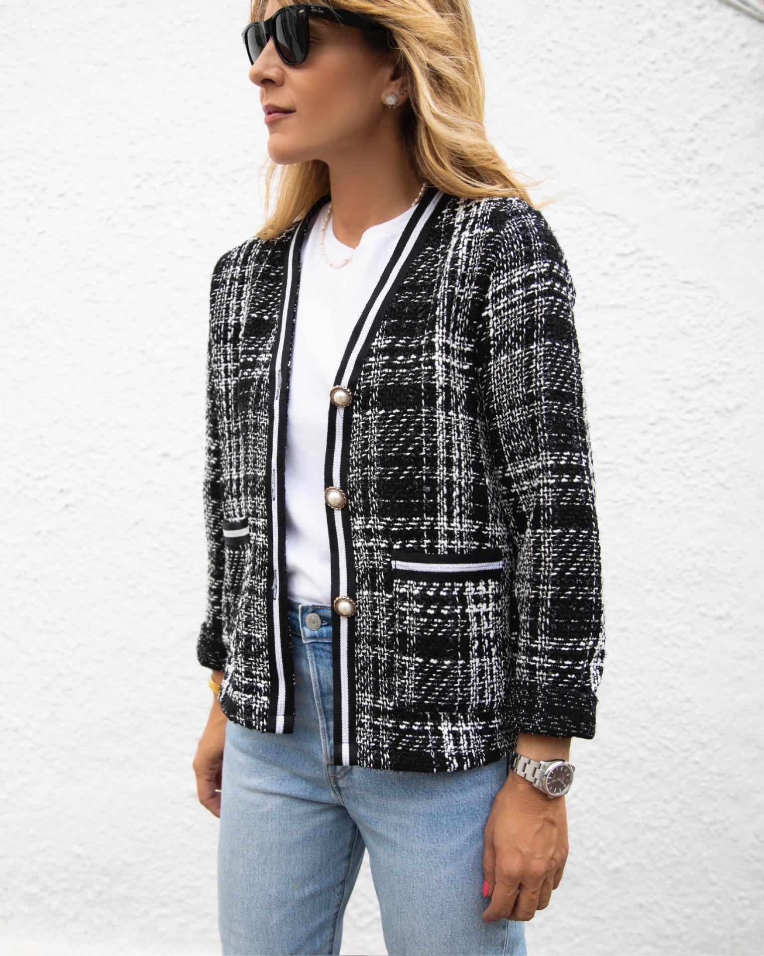 Nueva Chaqueta en tejido Tweed en tonos negros y camel.