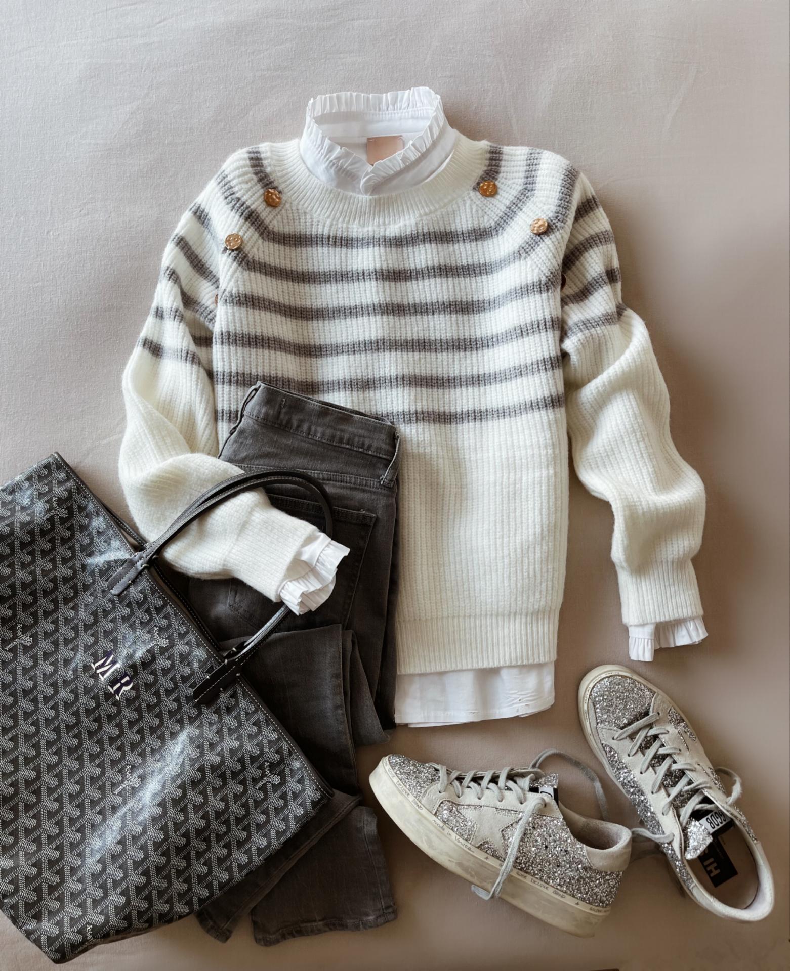 Nuevo Jersey de rayas en Camel con botones dorados en los hombros.