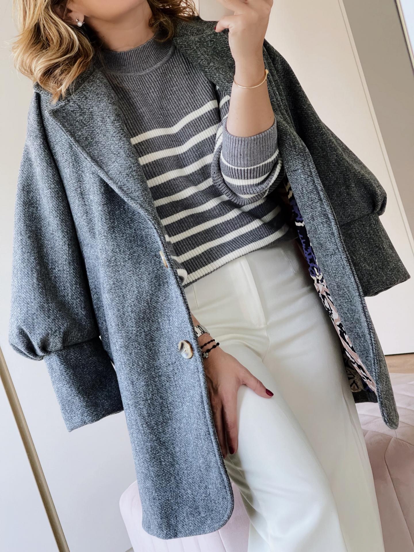 Nuevo abrigo Oversize con mangas abullonadas y puño ancho . Viene con bolsillos de tapeta laterales.