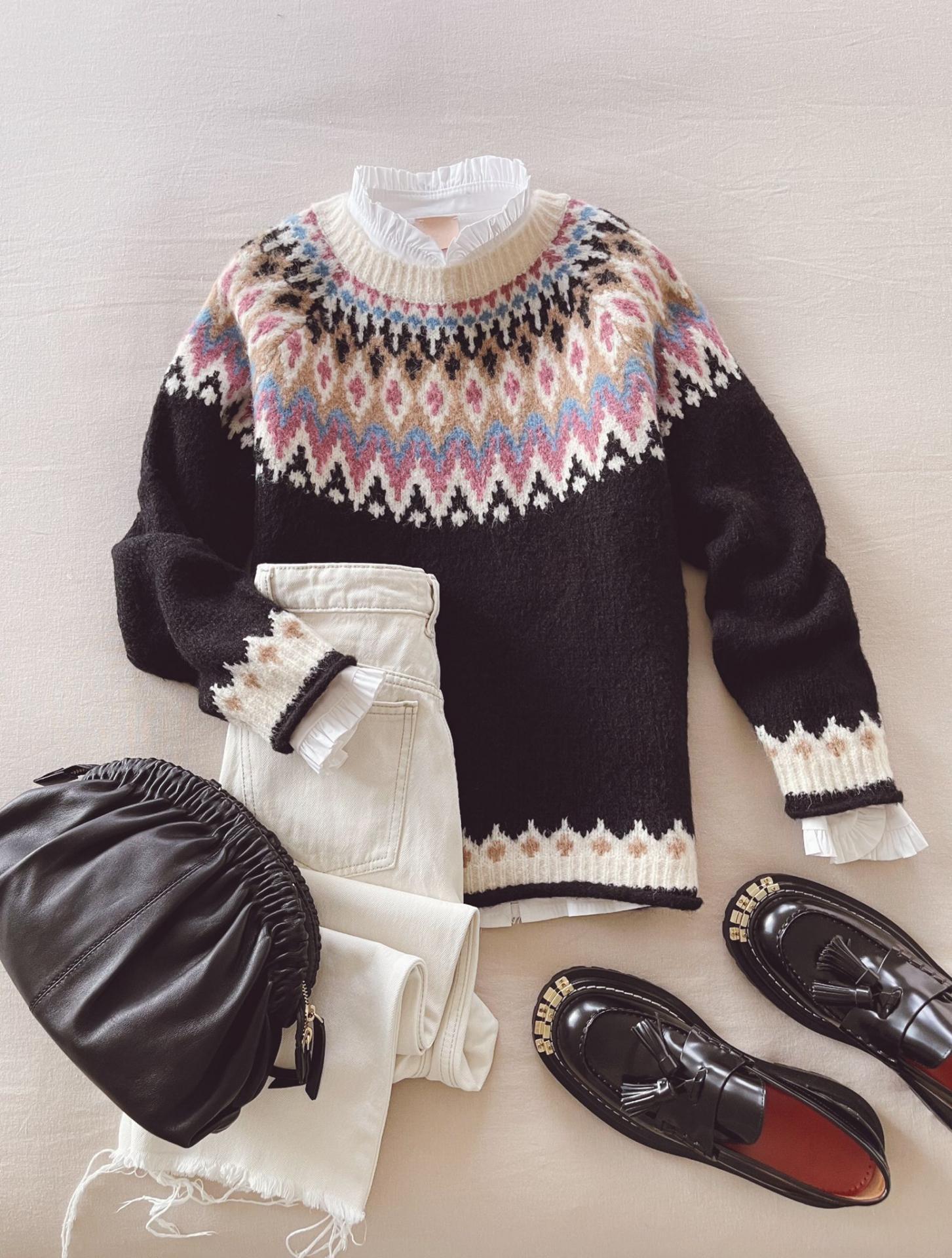 Nuevo Jersey de cenefas bordadas de corte recto y cuello redondo..