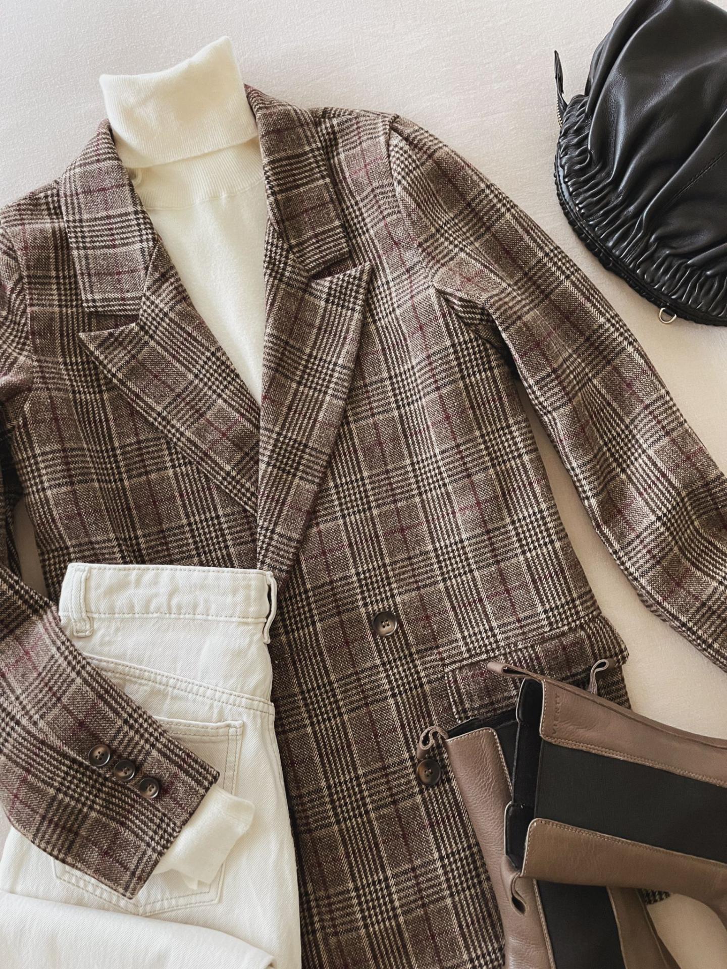 Blazer cruzado de cuadros gales. Bolsillos con tapeta y botones en los puños.