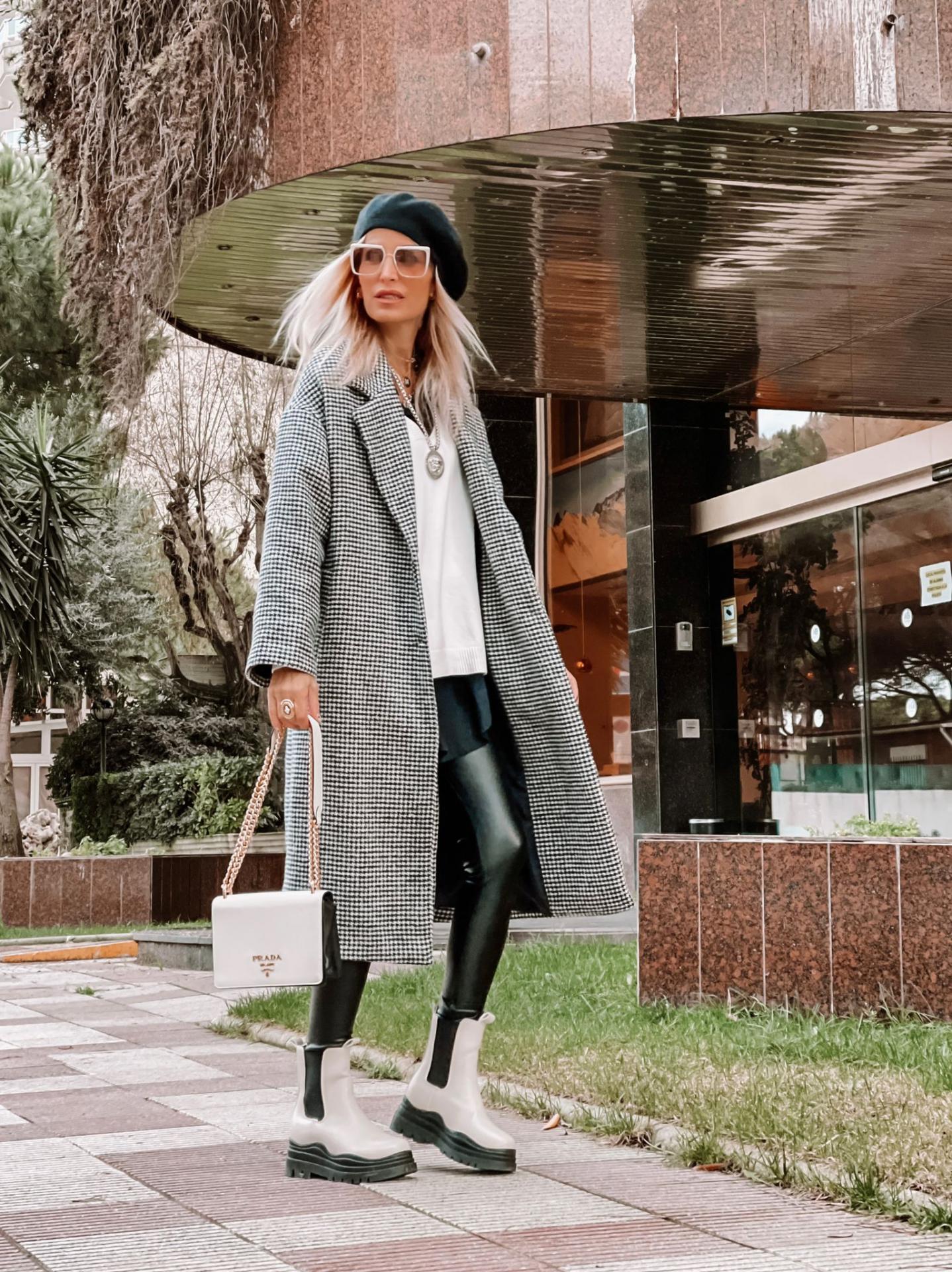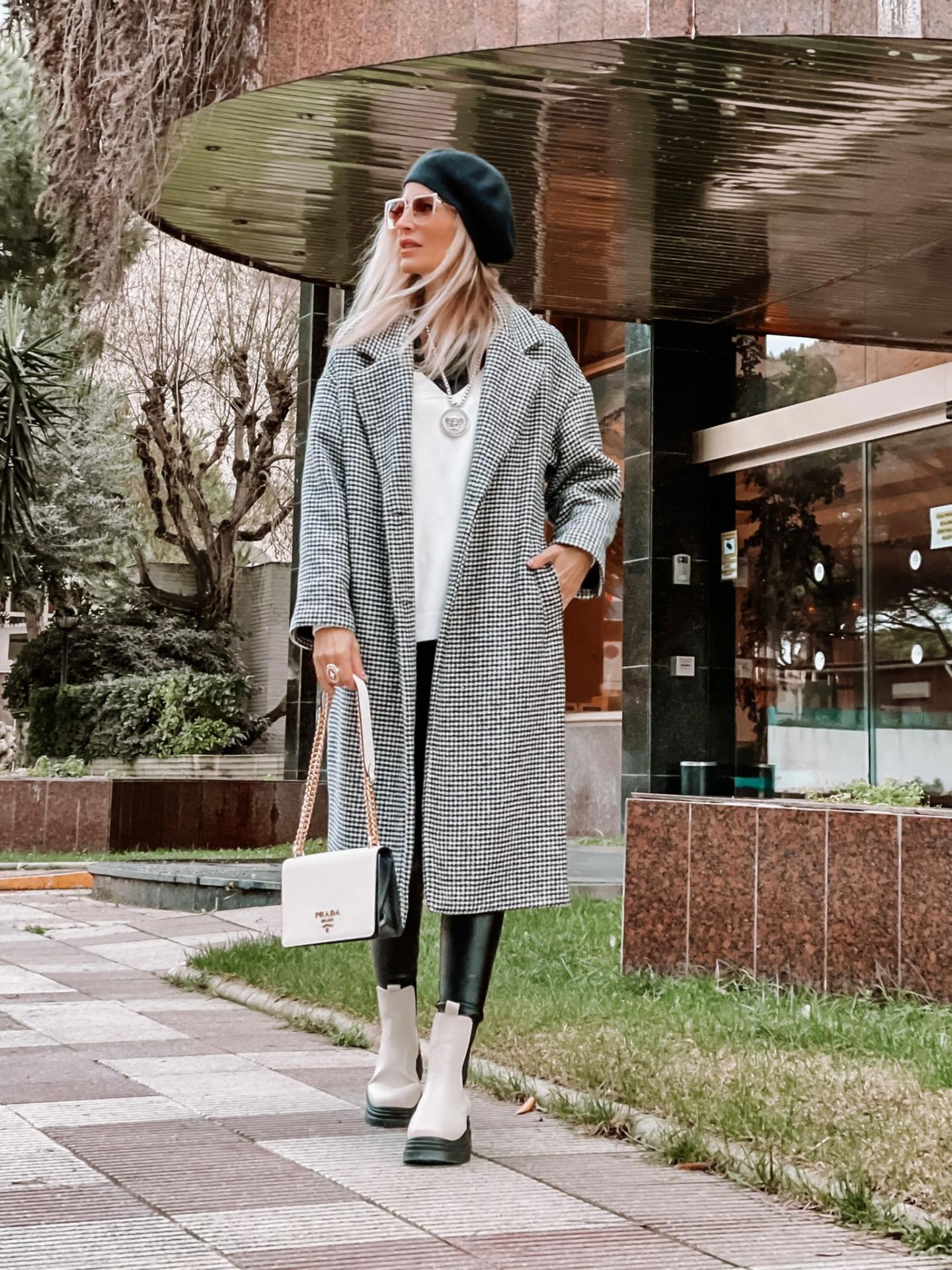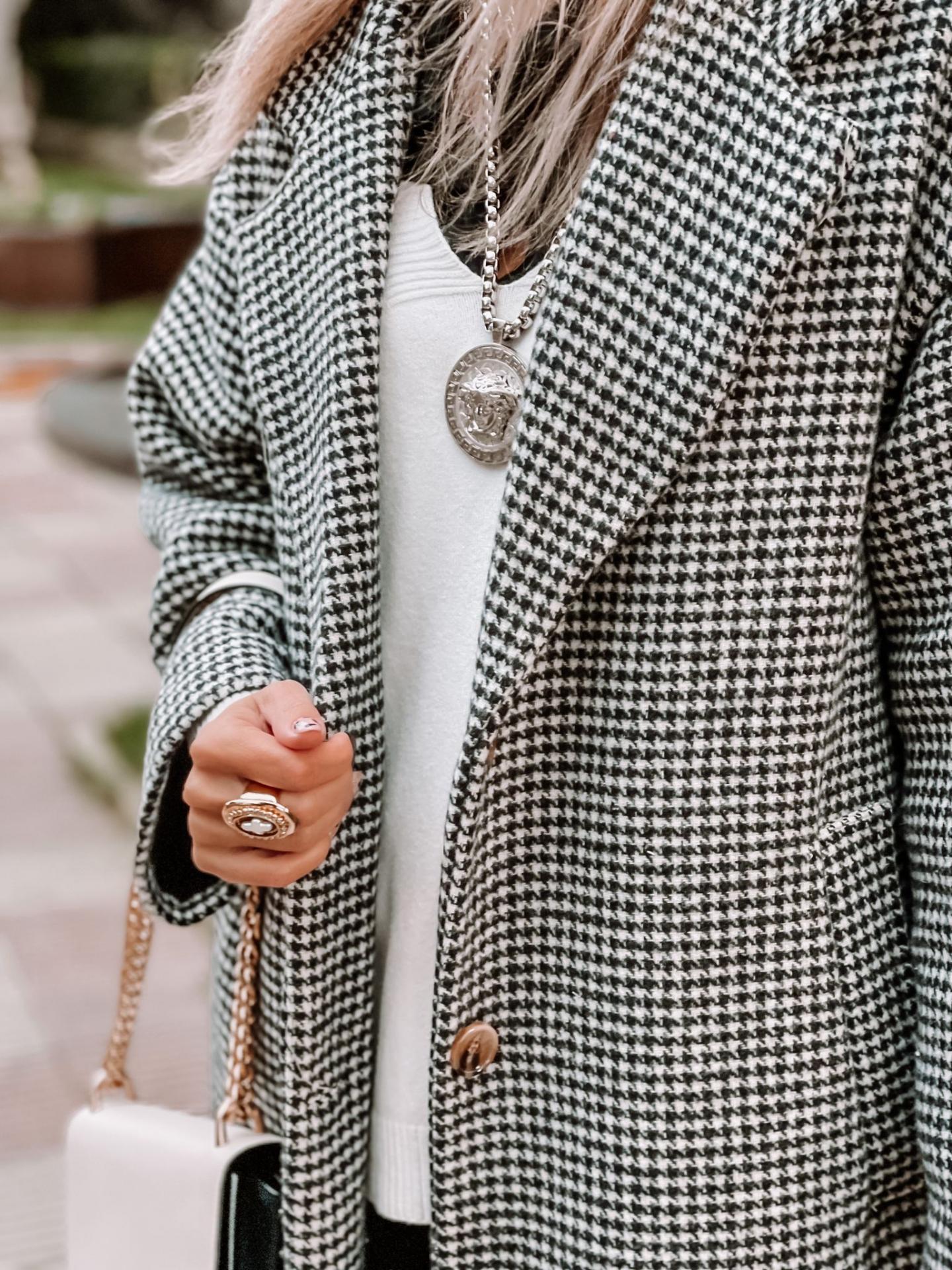 Maxi Abrigo de corte amplio y recto con estampado vichy y bolsillos inclinados
