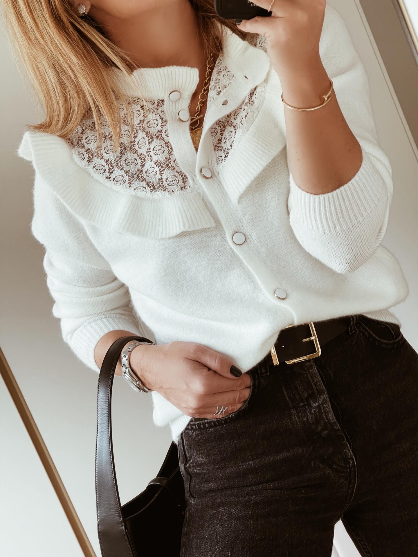 Nueva Chaqueta o Jersey con detalles de encaje y volantes.