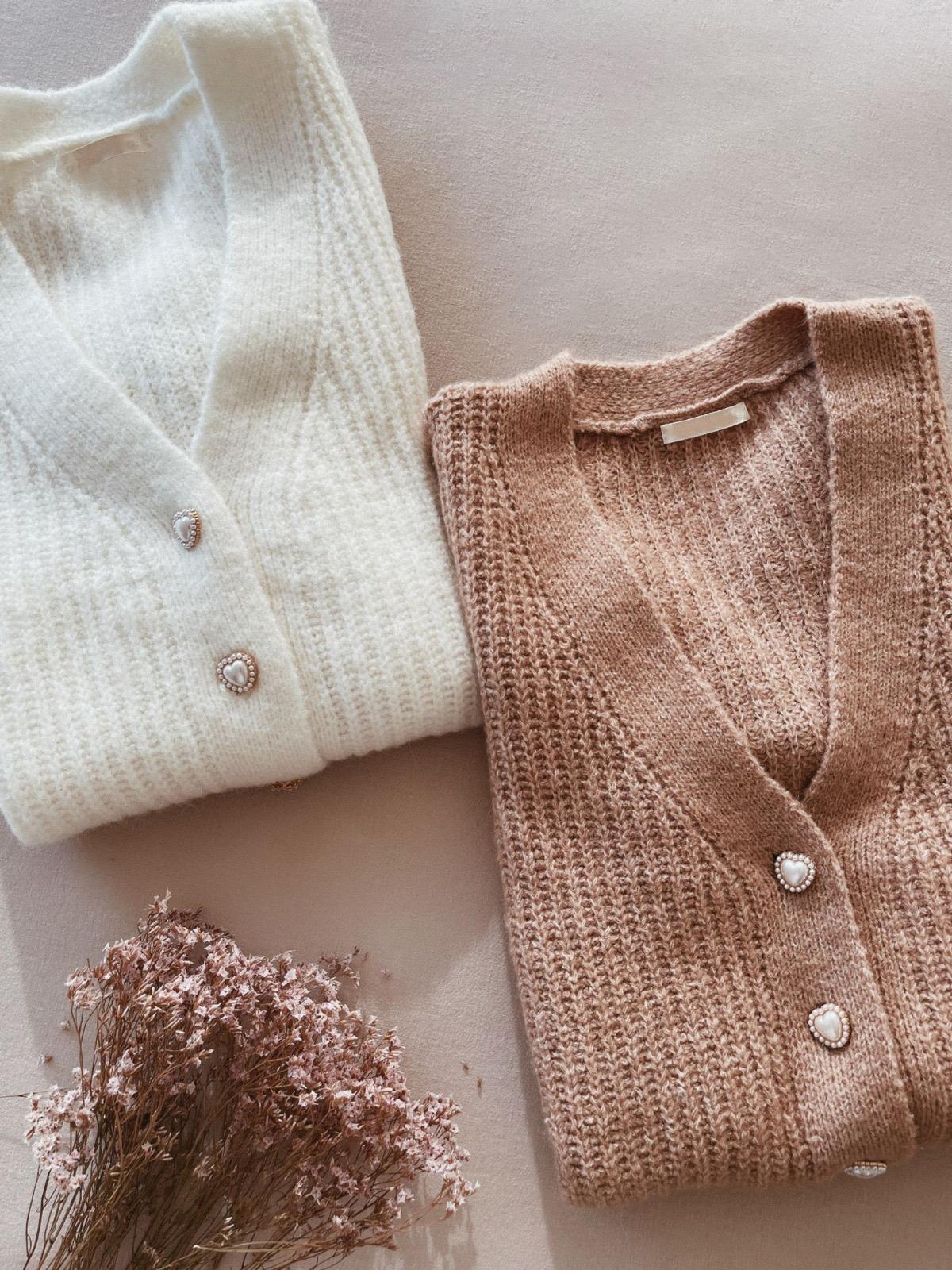 Nueva chaqueta con un tejido suave y gustoso de manga 3/4 ligeramente abullonada y corte amplio.