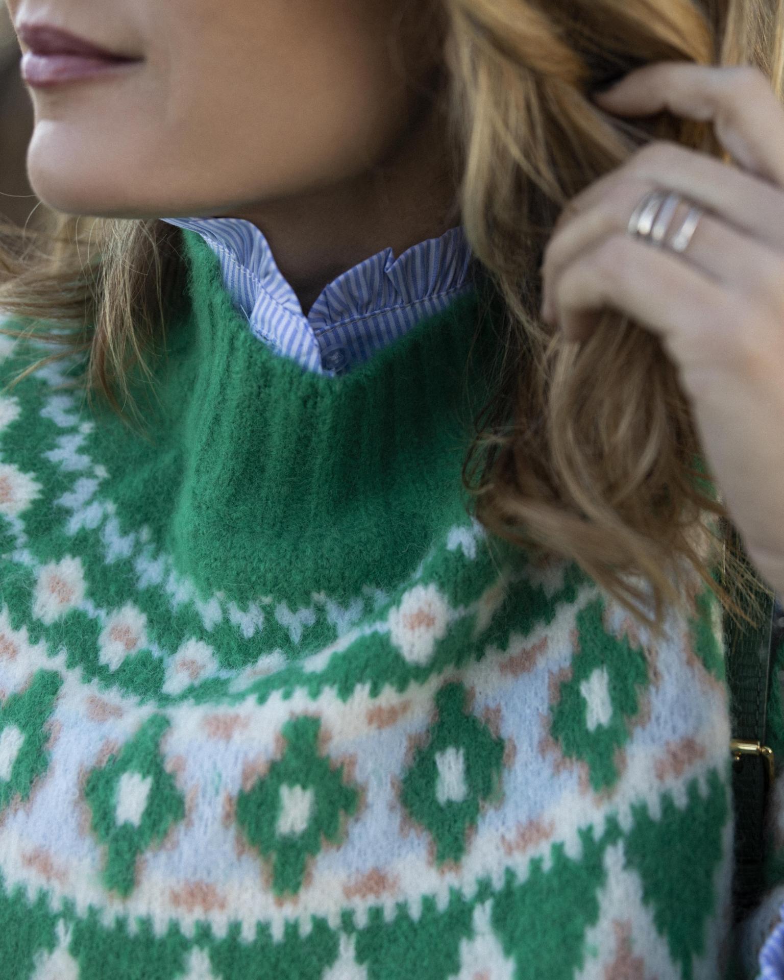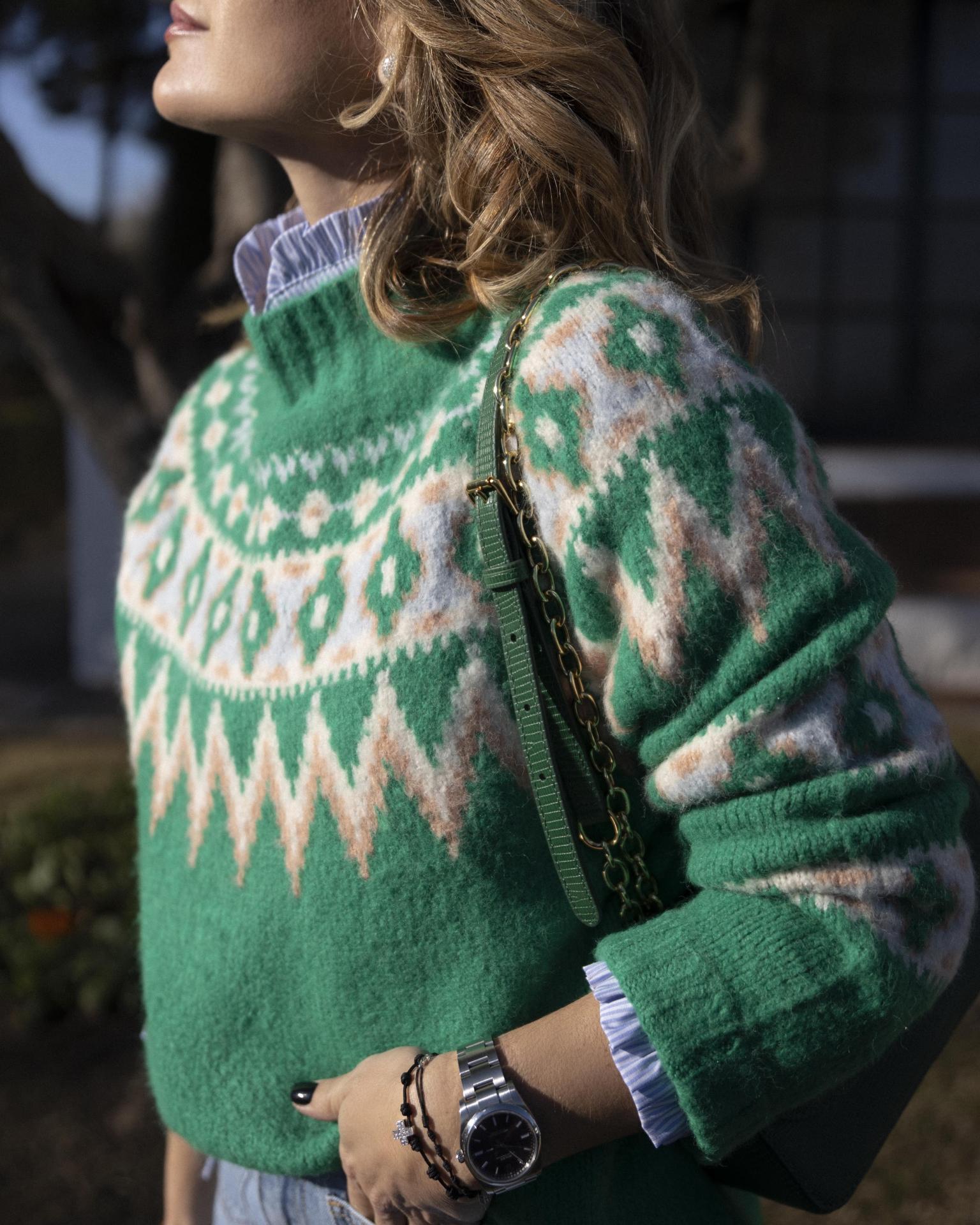 Nuevo Jersey de grecas tricotadas y cuello semi alto.