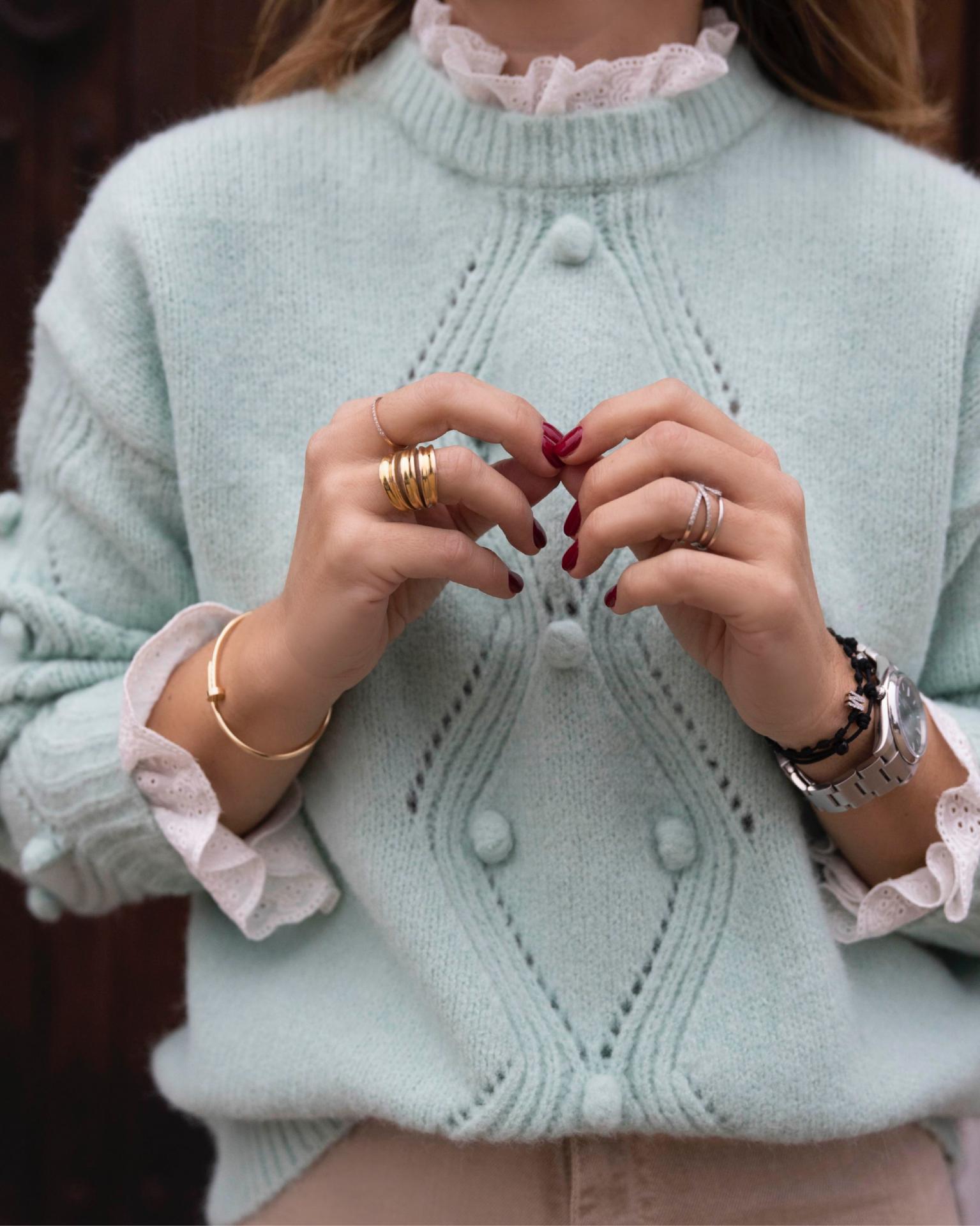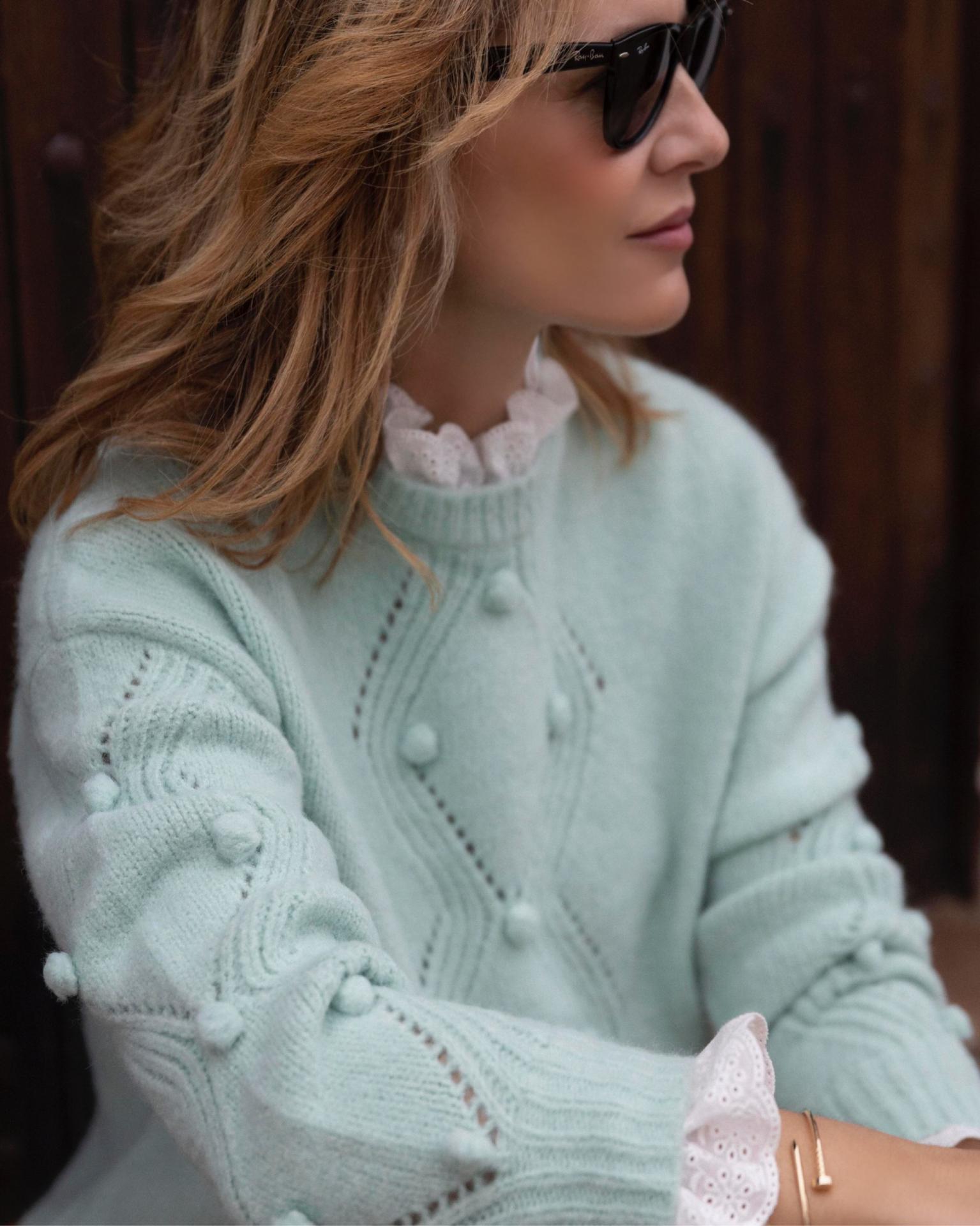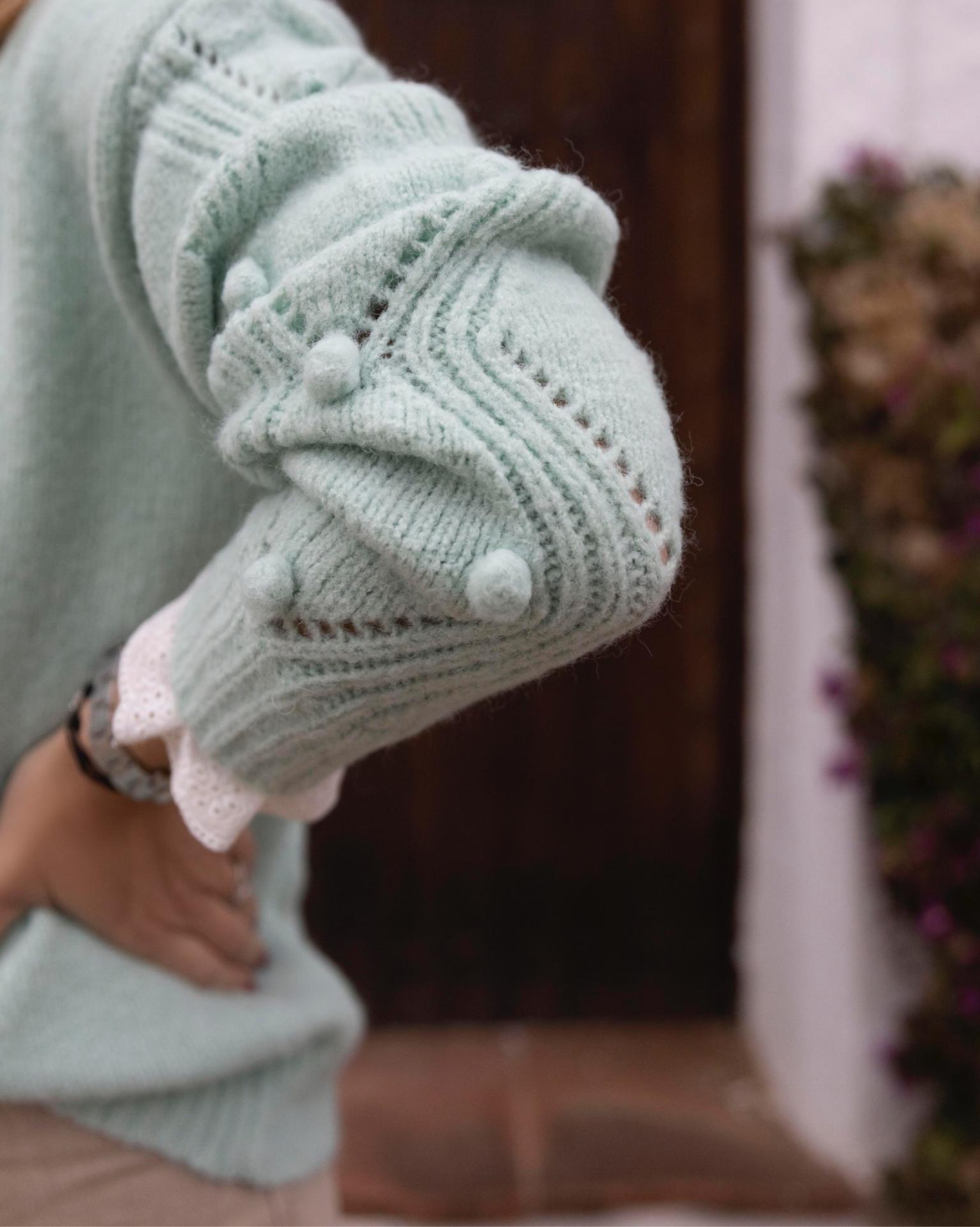 Un jersey precioso de corte recto con detalles efecto blusa en cuello y puños.