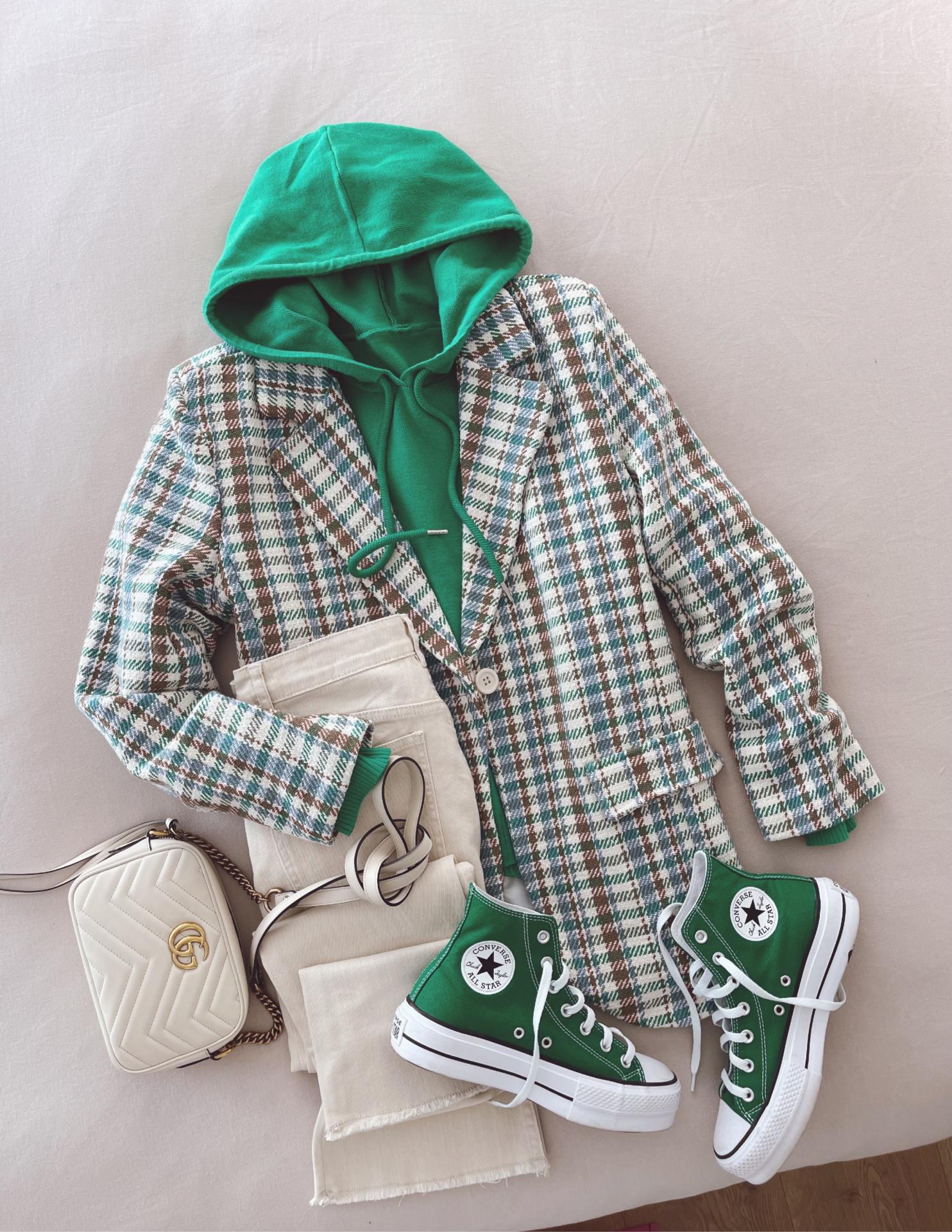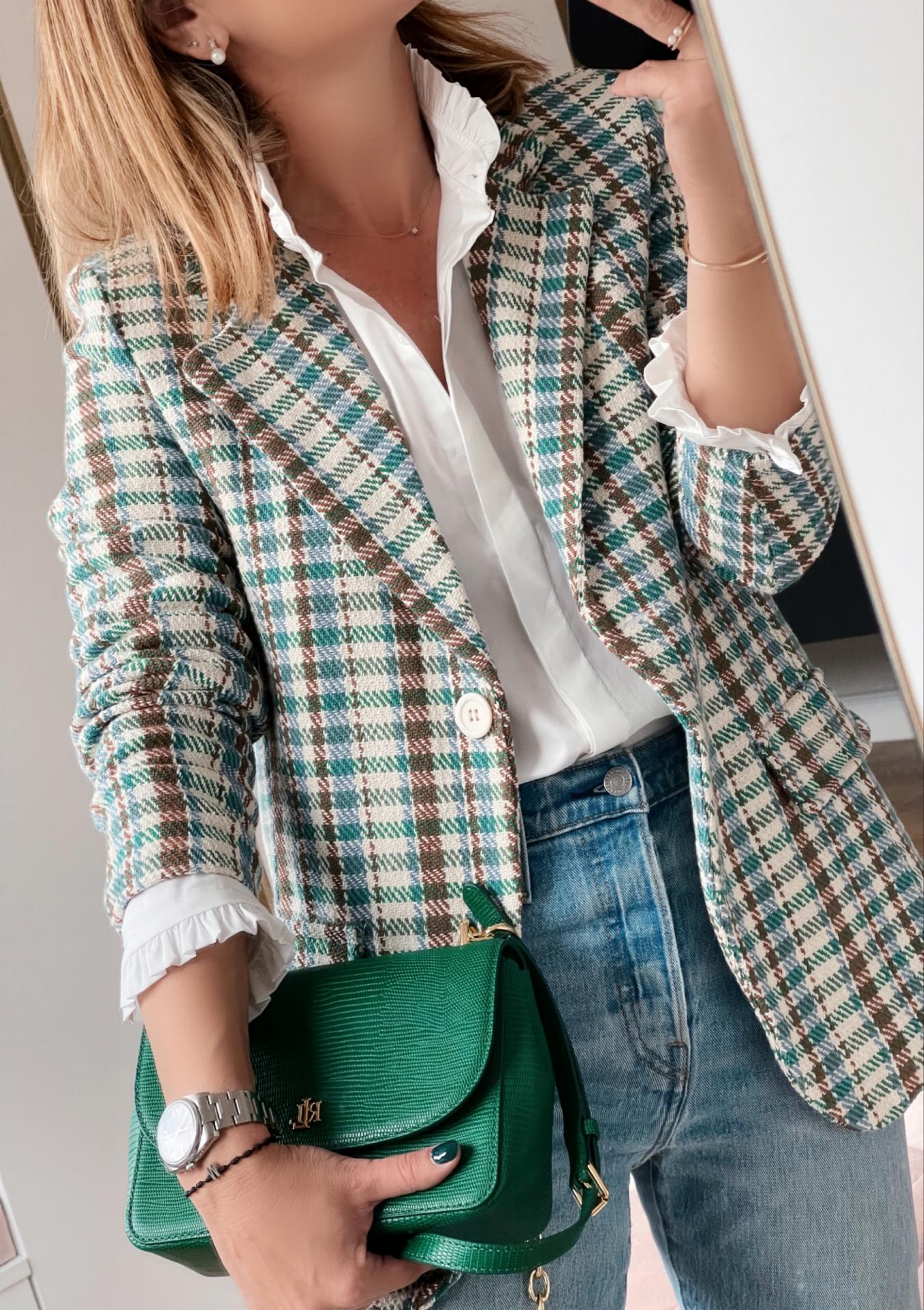 Blazer de cuadros de corte recto , con tapeta de falsos bolsillos en el delantero. Viene forrado