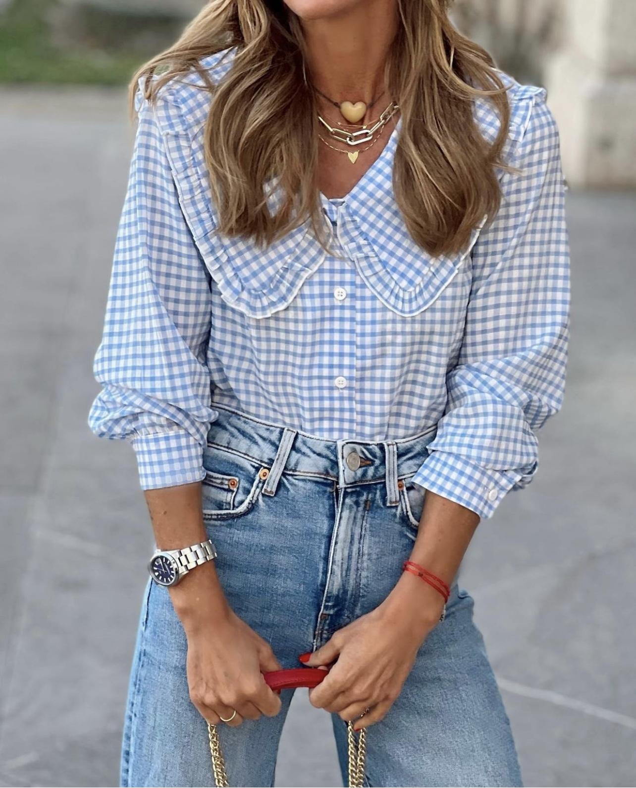 Nueva blusa en cuadro vichy con un tejido maravilloso y cuello bobo.