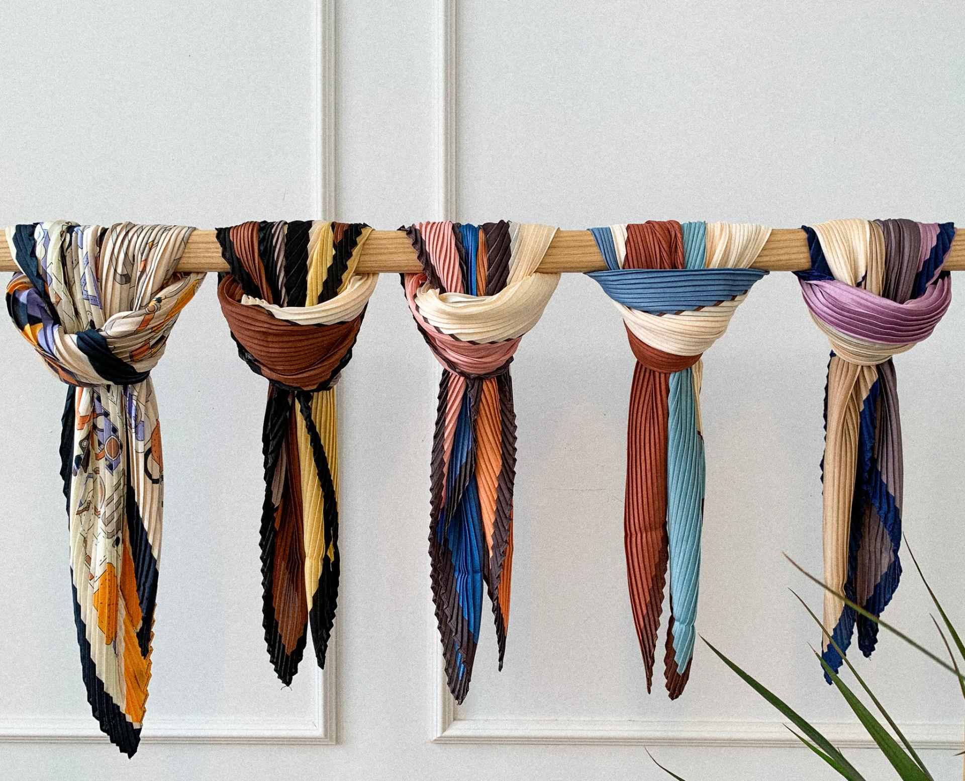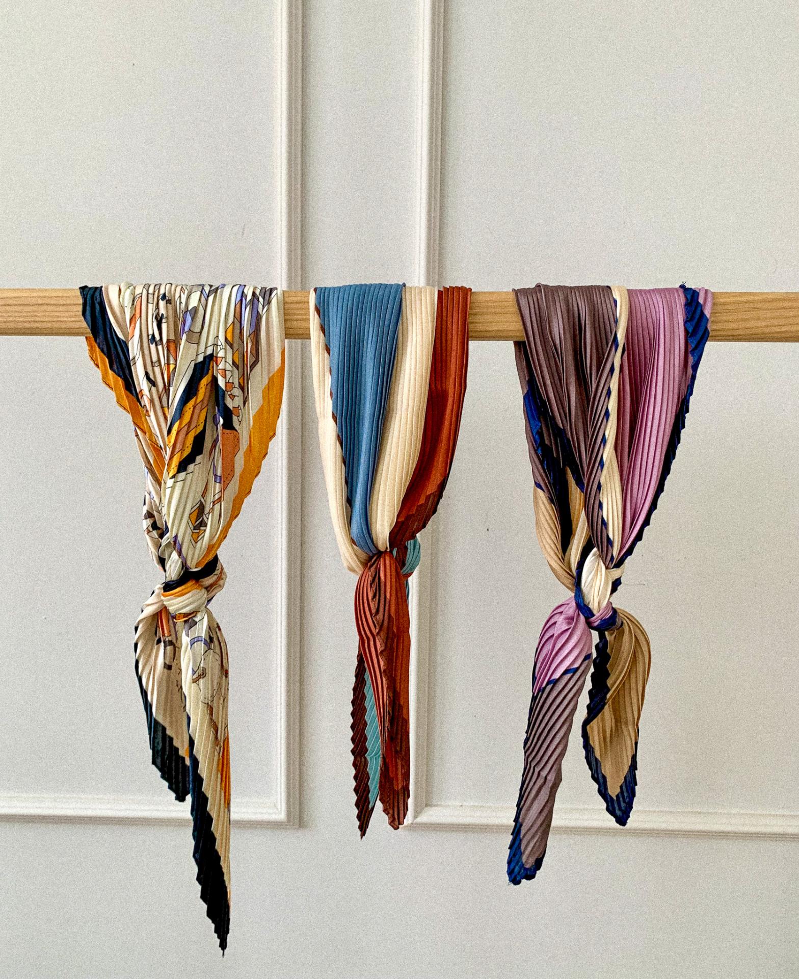 Pañuelo plisado con motivos en rojo by azul marino perfecto para combinar con camiseta o lencero.