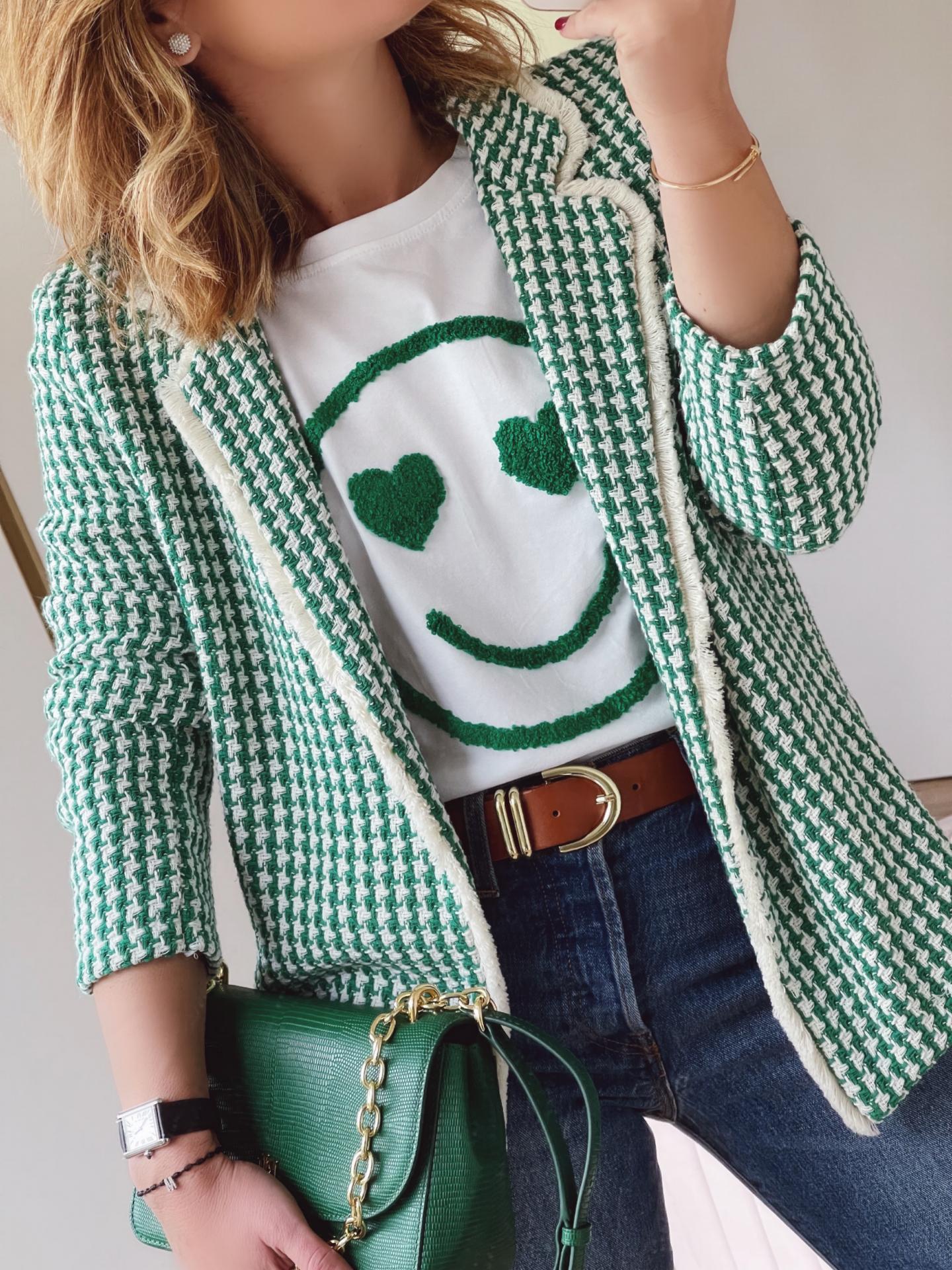 Chaqueta tweed abierta sin abotonar, es muy ligera y cómoda, te va a encantar!