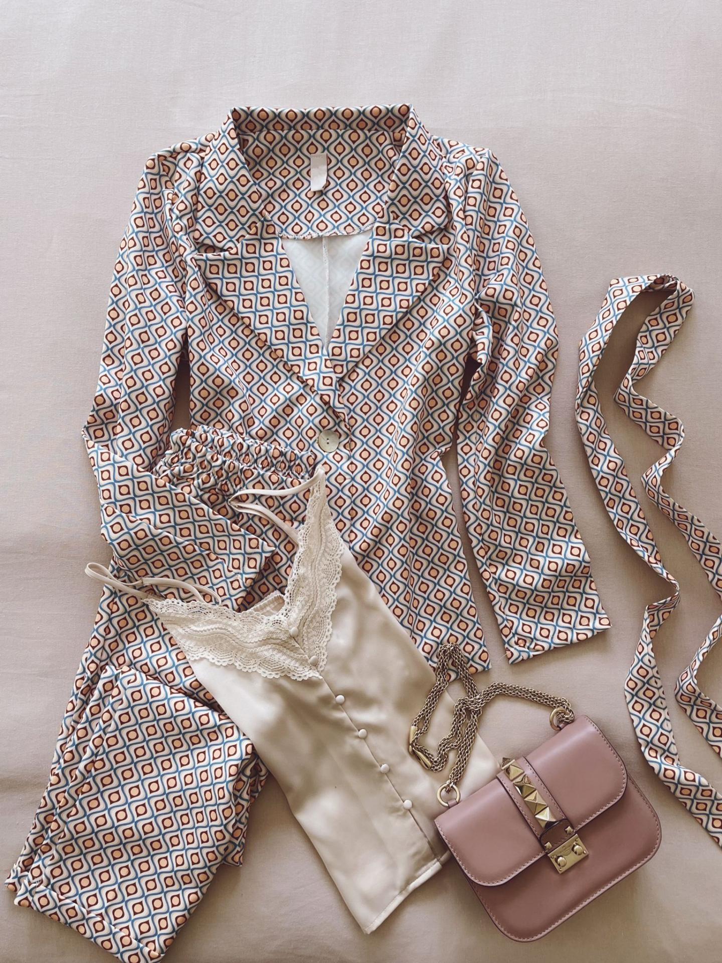 Conjunto pantalón y americana estampado.