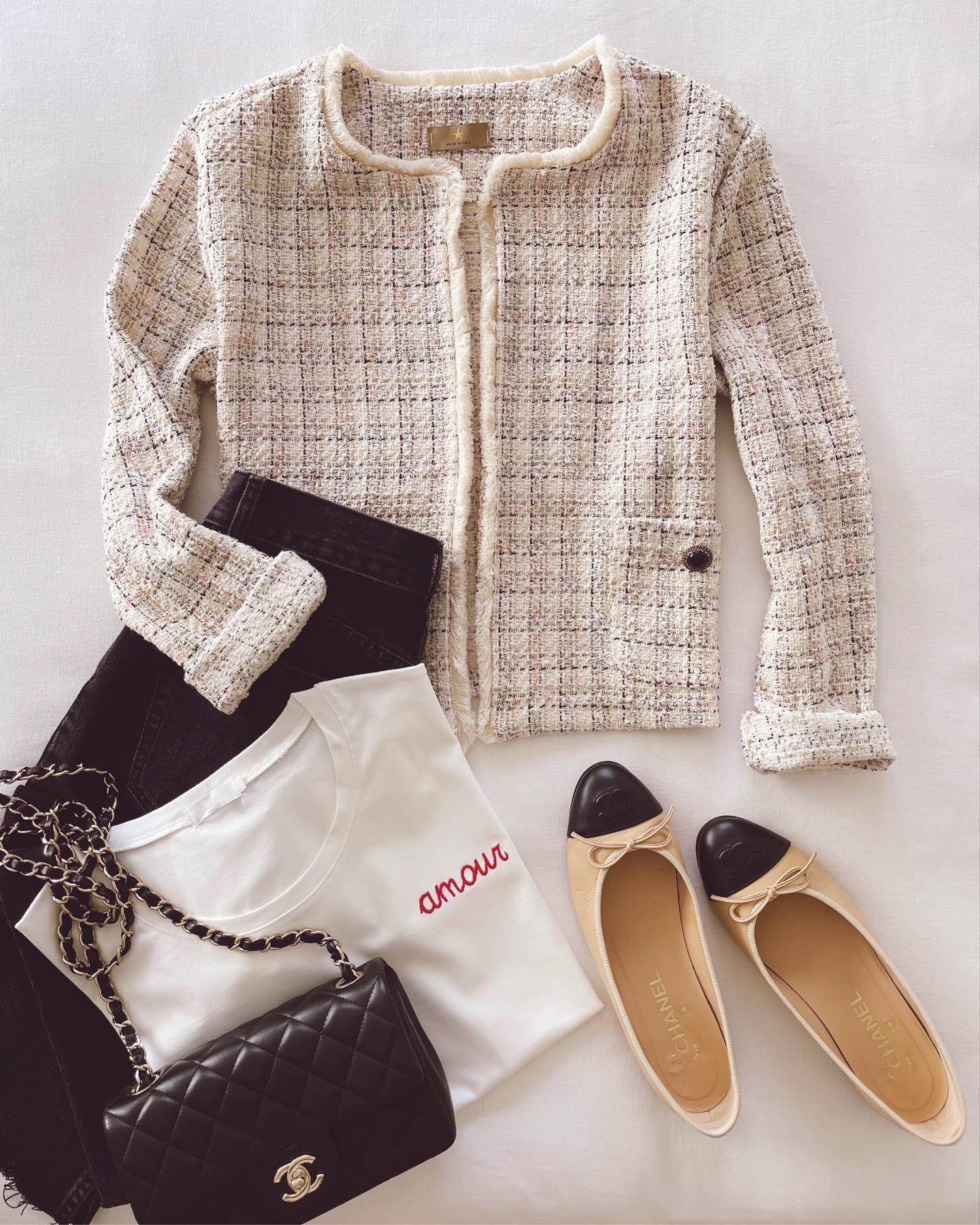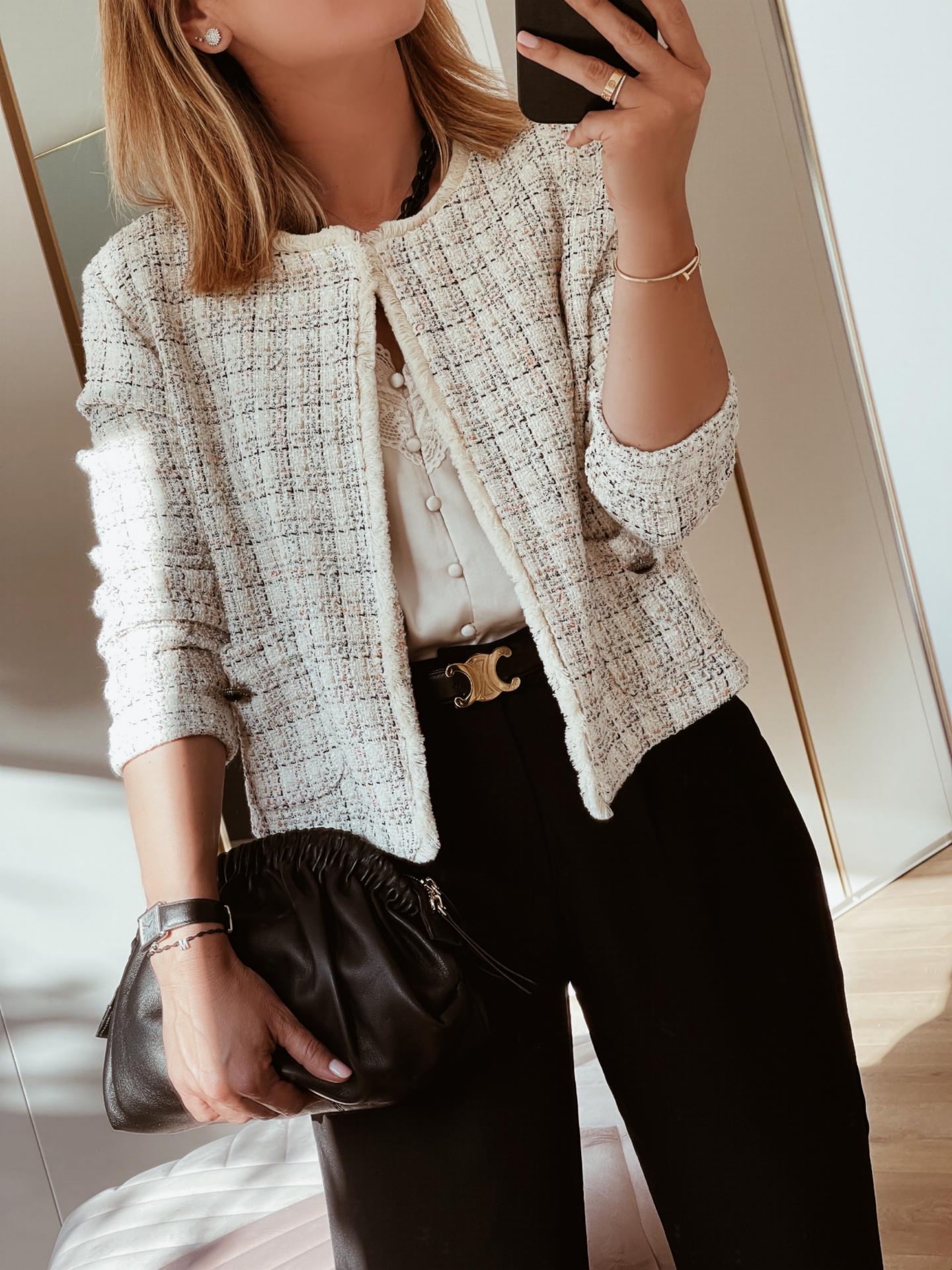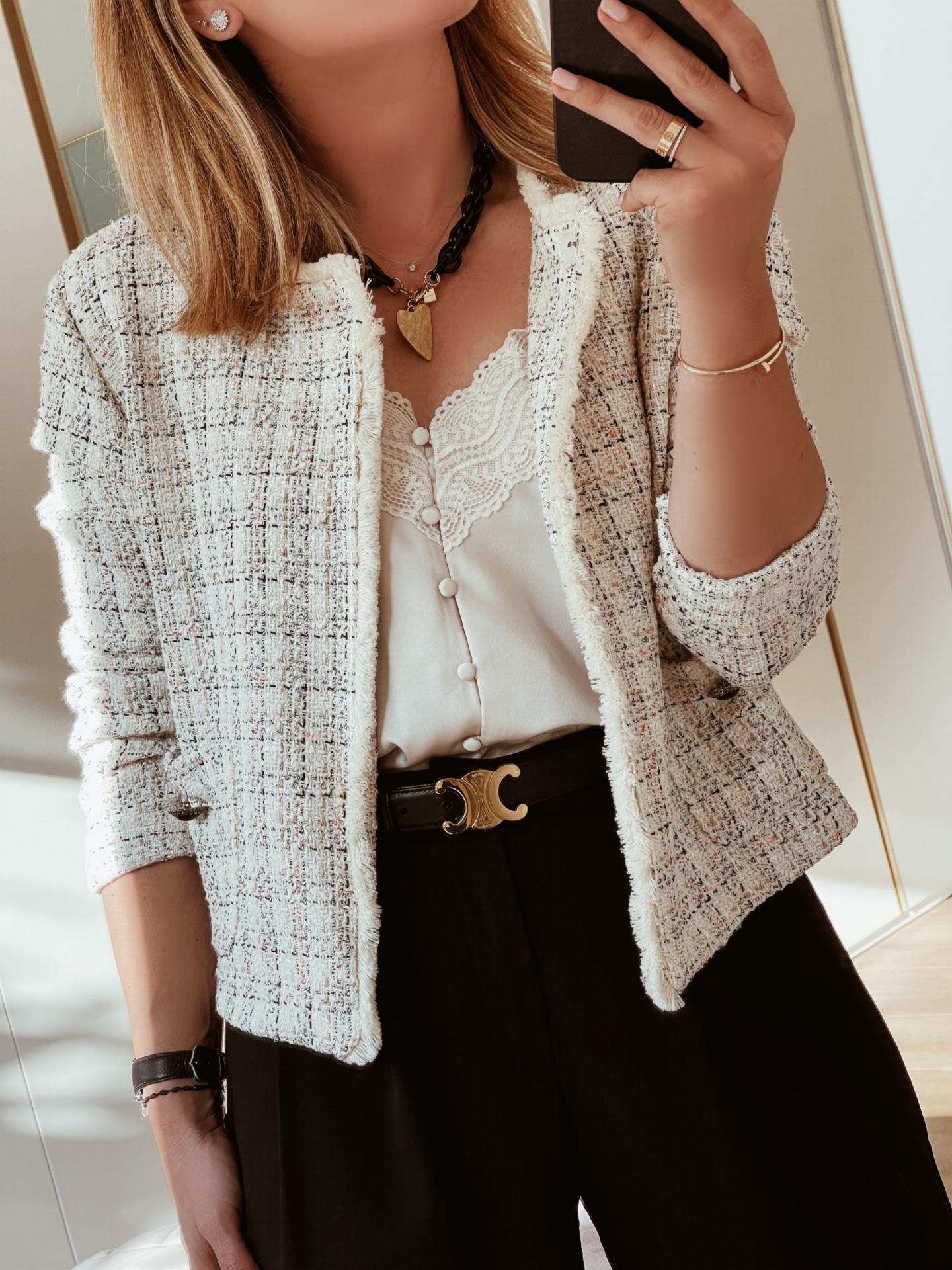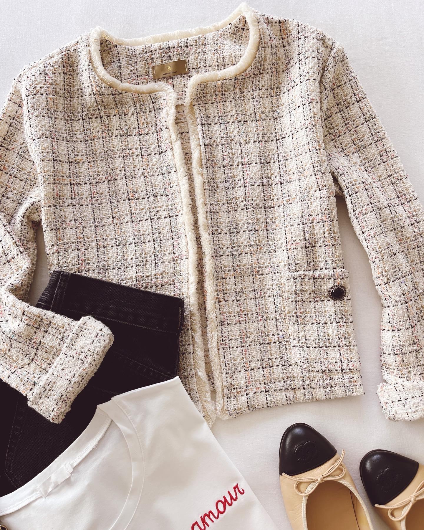 Nueva chaqueta en tweed de efecto ligero sin forro.