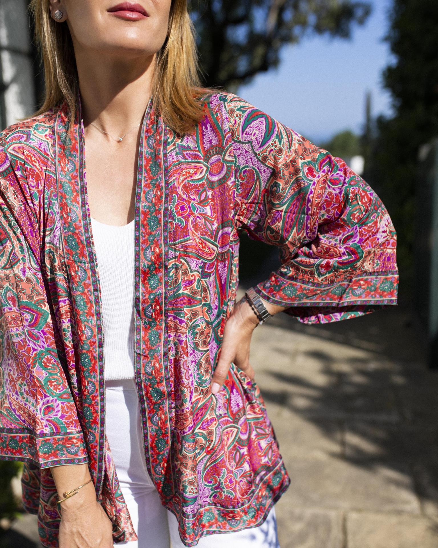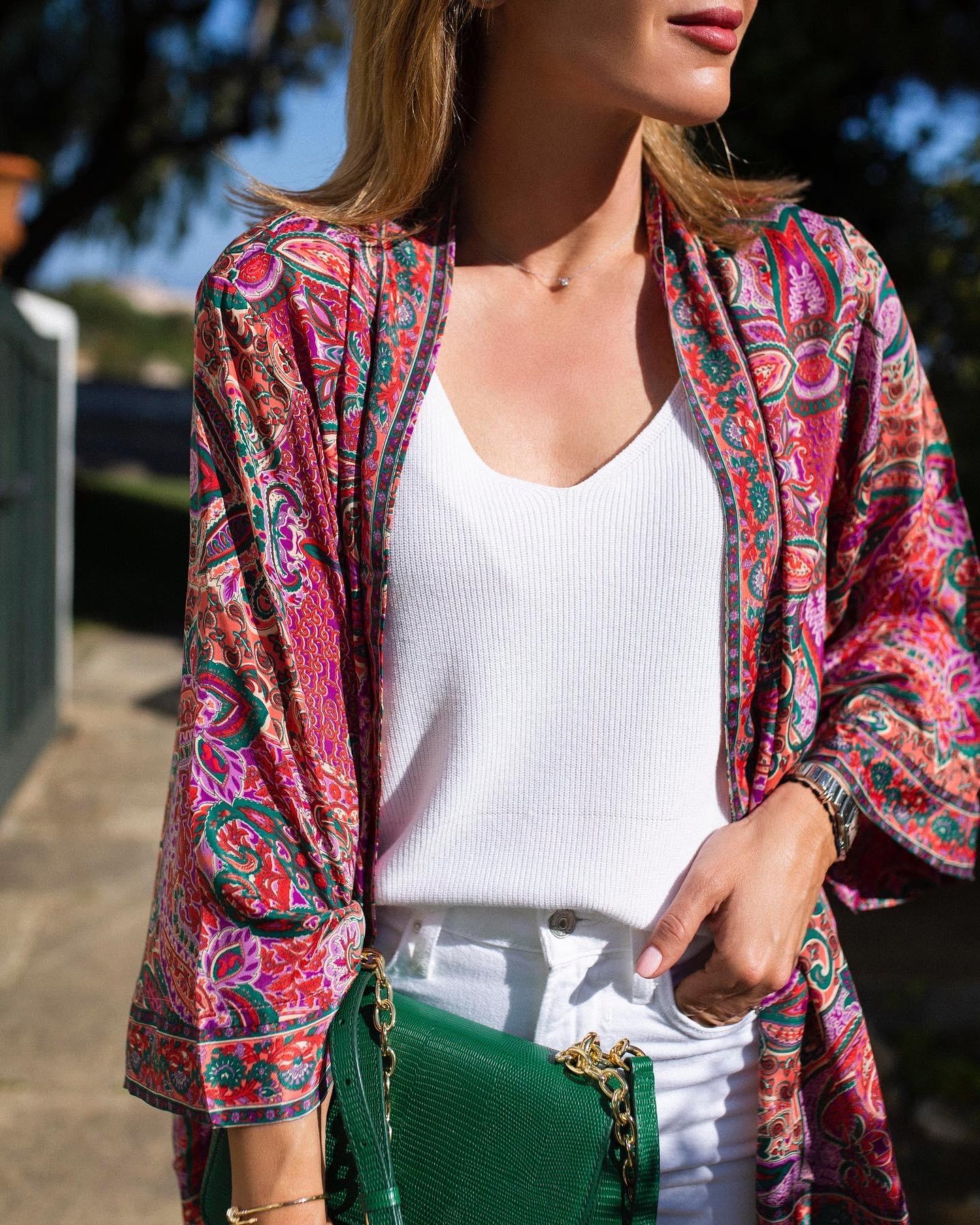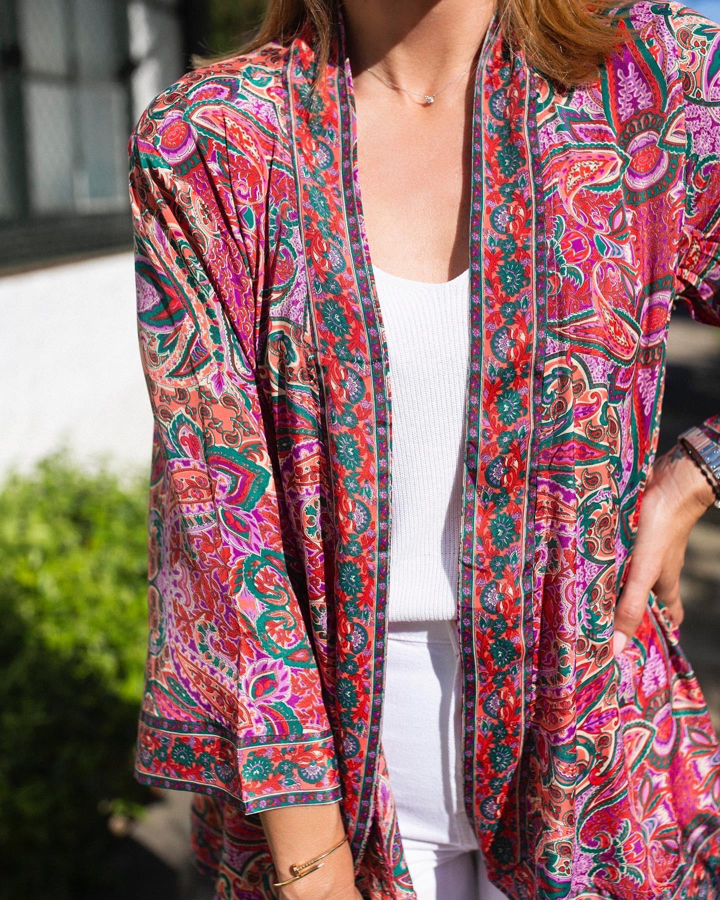 Nuevo kimono de corte recto y manga japonesa con un estampado ideal para que combines con tus jeans favoritos y unos shorts en verano.